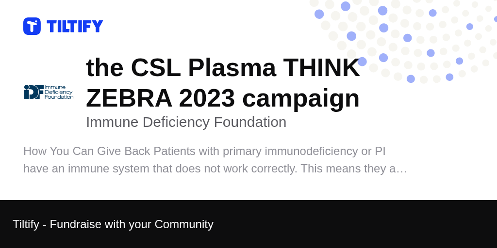 Tiltify the CSL Plasma THINK ZEBRA 2023 campaign
