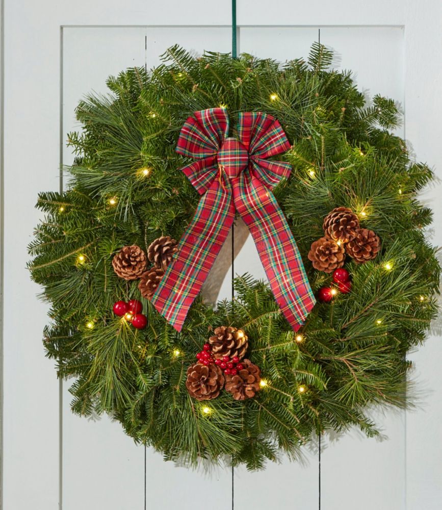 Tartan Christmas Fir Wreath, Lighted, 24" Wreaths at L.L.Bean